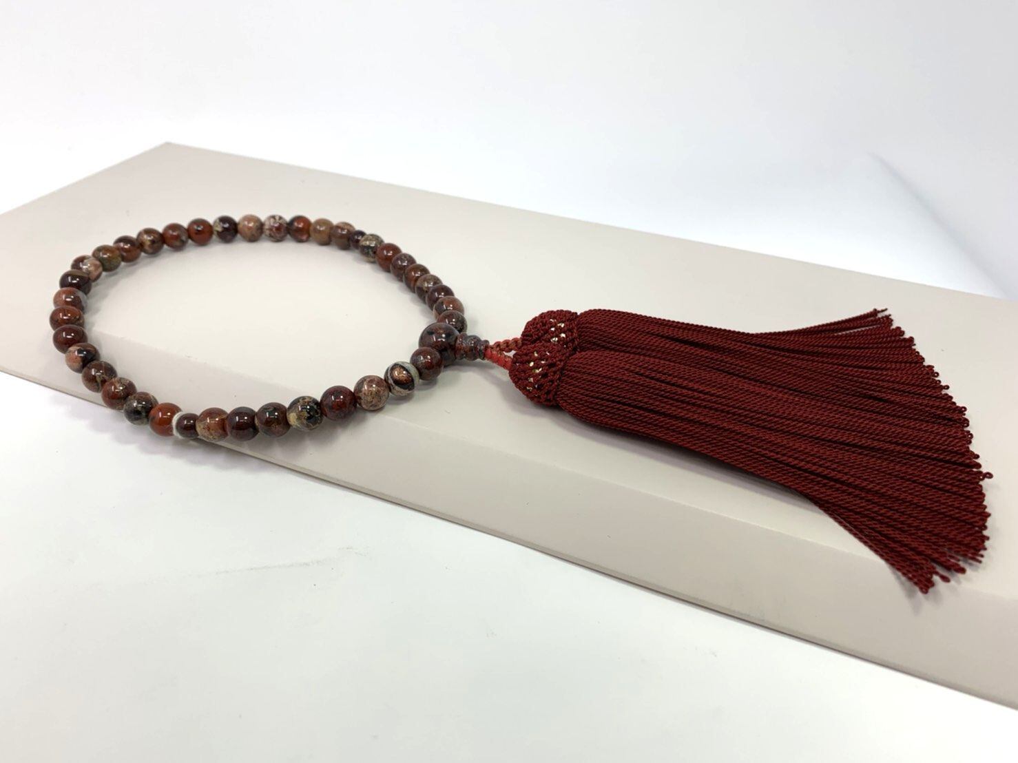 ジャスパーは大地を象徴する石なので、大地が持つようなどっしりと落ち着いたエネルギーが感じられます。臙脂の房ともよく合いシックで大人の装いを感じるお数珠に仕上がっております。